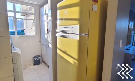 Cozinha completa com fogão de indução, geladeira duplex, micro-ondas, forno elétrico, máquina de lavar louças