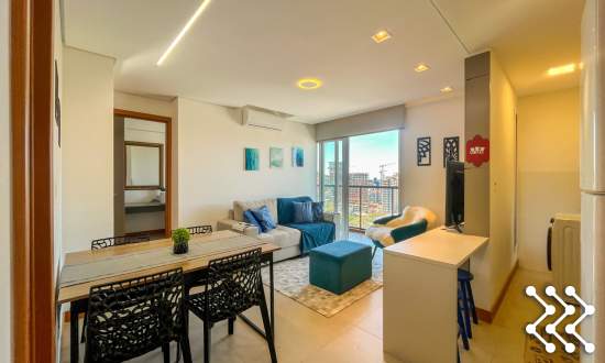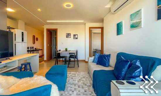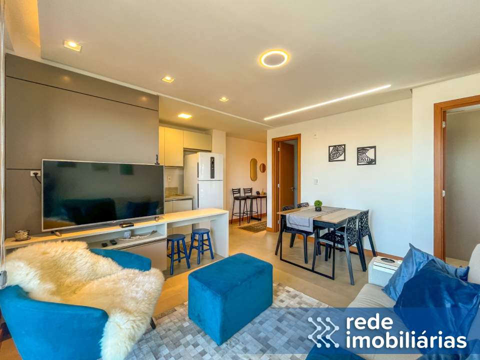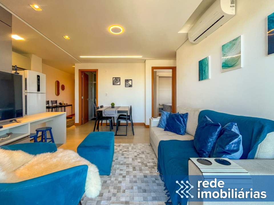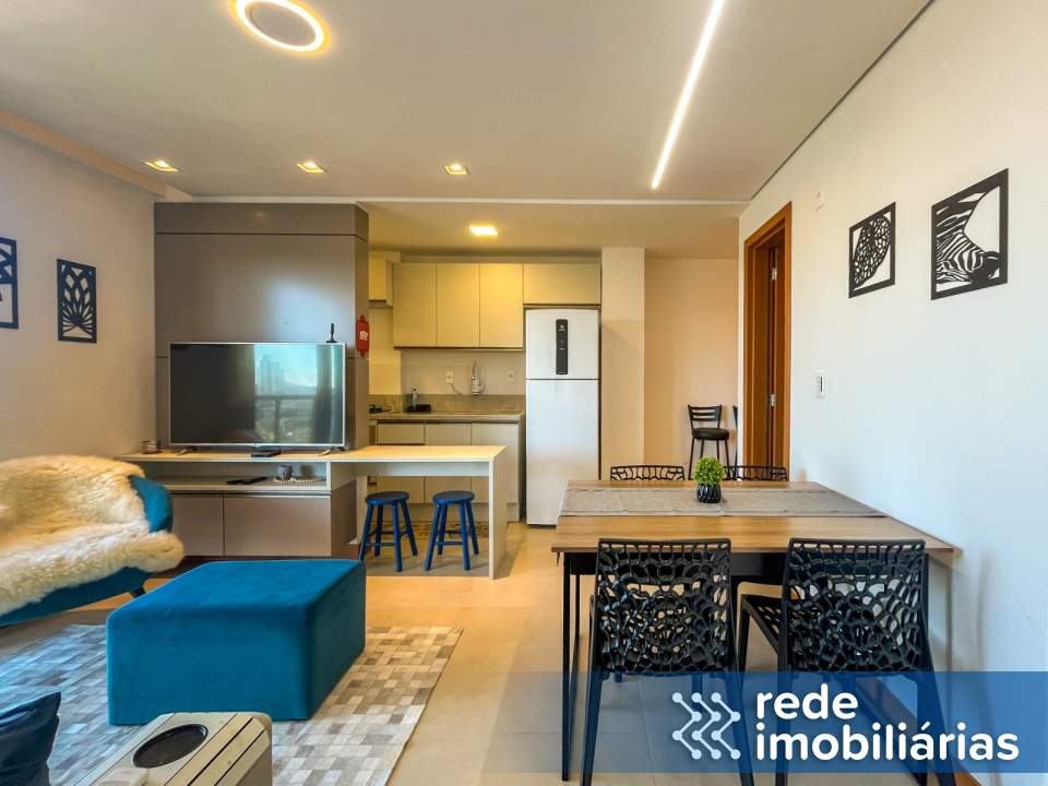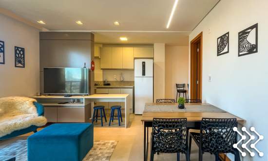 Sala aconchegante, integrada a cozinha totalmente equipada.