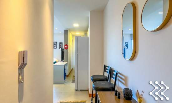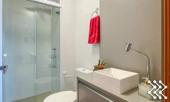 São dois dormitórios, sendo uma suíte com acesso a sacada, e um banheiro social.