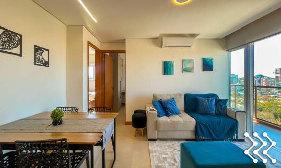 Imagine abrir a porta e já ter tudo a mão: Móveis sob medida, eletrodomésticos, ambientes bem pensados e uma ampla sacada com churrasqueira para curtir a vista?!