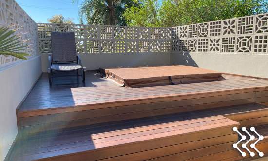 - área aberta de lazer com piscina
