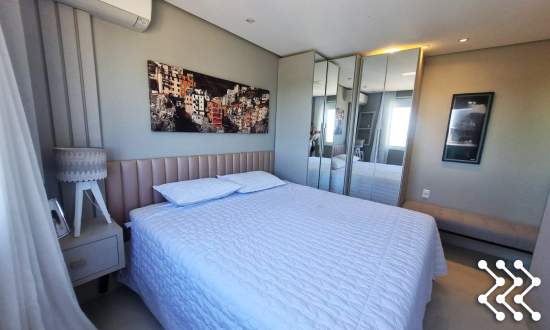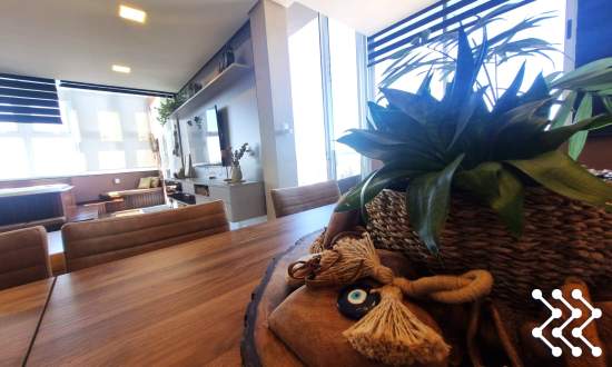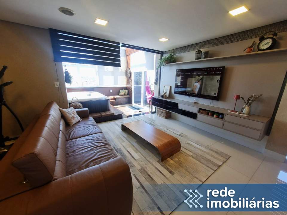 Um dos grandes diferenciais é a hidromassagem integrada à sala, com vista panorâmica, criando um ambiente único de relaxamento e contemplação. A sacada/varanda é ampla, proporcionando ainda mais integração e luminosidade aos ambientes.