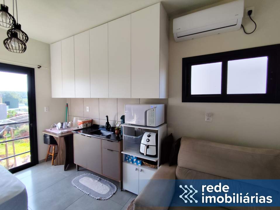 Dormitório e cozinha com móveis planejados