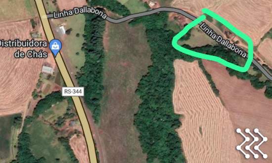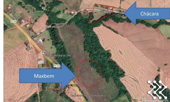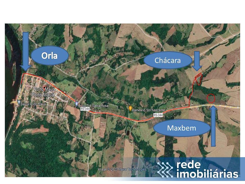 Chácara fica a 500 metros do asfalto RS 344, e a 3700 metros da Orla de Porto Mauá;